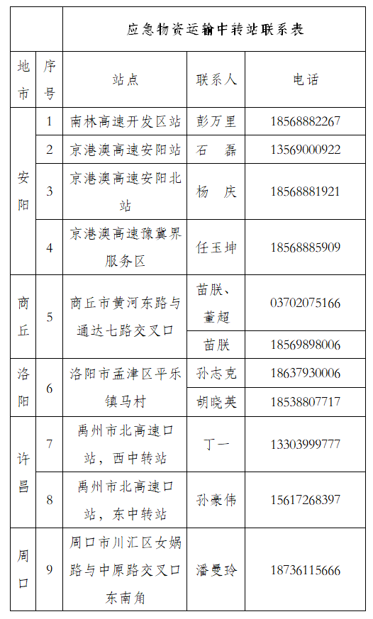 八、全省應急物資運輸中轉站在哪里?聯系方式是什么?