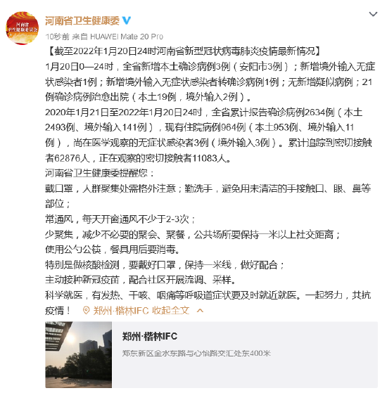 [截至2022年1月20日24時(shí)河南省新型冠狀病毒肺炎疫情最新情況]