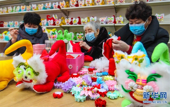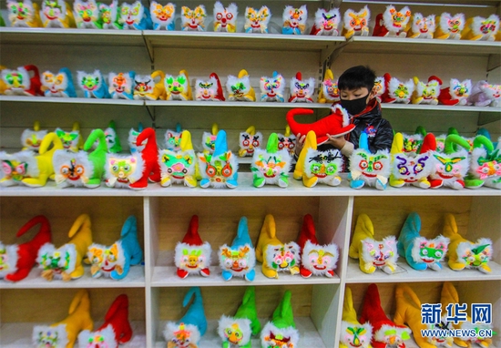 農歷虎年春節降至,在河南省南陽市鎮平縣,省級非物質文化遺產項目“侯氏手工布藝編織”傳承人創作出多種“生肖虎”作品,惟妙惟肖的“萌虎”頗討人喜歡,吸引了不少人前來購買。新華網發(高嵩 攝)