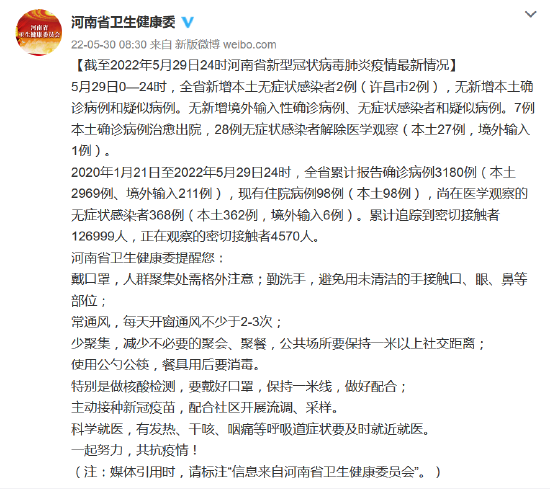 [截至2022年5月29日24時河南省新型冠狀病毒肺炎疫情最新情況]