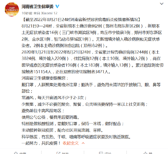 [截至2022年8月21日24時(shí)河南省新型冠狀病毒肺炎疫情最新情況]