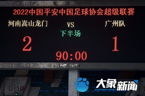 此后,遲遲打不開局面的廣州隊進行了多次換人,但場上局面依然站在河南嵩山龍門這邊。