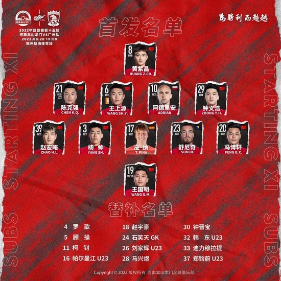8月28日19:00,在2022賽季中超聯賽第15輪的比賽中,河南嵩山龍門回到主場航海體育場迎戰廣州隊。