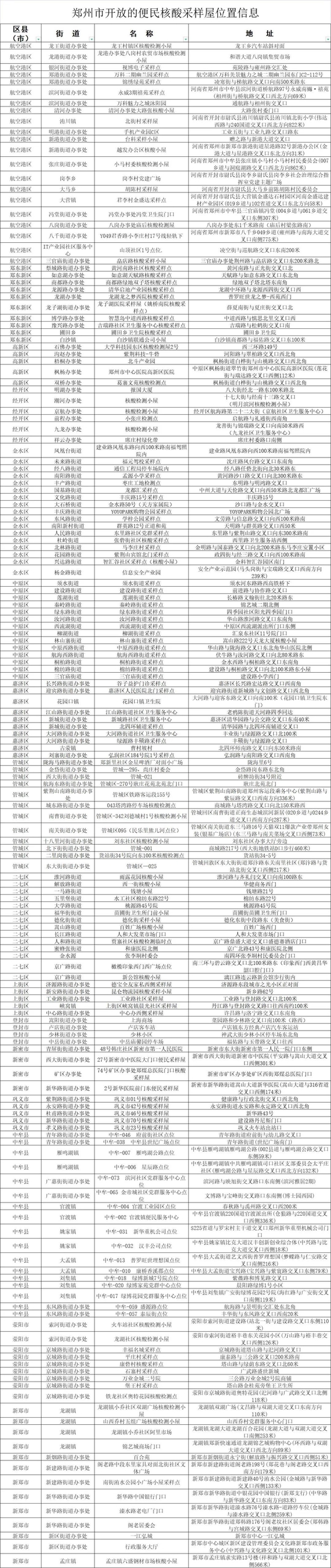 開放的核酸采樣屋位置信息附后(持續更新中)。