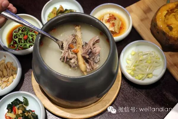隱 匿街邊院內的參雞湯屋, 內里是別有洞天。選用青麻腿雛雞,除去內臟后,塞入糯米、糙米、紅棗等,搭配文火慢燉8小時以上,一顆高麗鮮人參才是精華,肉香里帶著米香和藥香,湯清無 油,滋味香濃,潤喉暖身。韓式烤五花腌料是重點、芝士焗紅薯軟糯蜜心。針對不同年齡段人調理身體所需,參雞湯每天銷售有限,可以提前預定個人需求的參湯。